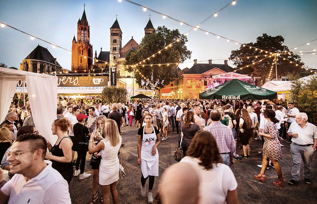 Culinair openluchtfestival op Vrijthof Maastricht: proeverijen van toprestaurants, livemuziek en Bourgondische sfeer – een smakelijk hoogtepunt in het hart van Limburg.